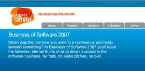 So I am intrigued by the way that a conference called Business Software 2007 is recruiting some of its speakers: with a Software Idol contest. If you want to speak, you have to submit a short YouTube video "on a topic that will inspire, and be relevant to, an audience of software executives. Start off by saying who you are, that you want to speak at Business of Software 2007 and then pitch. Your video should be no more than 3 minutes long."