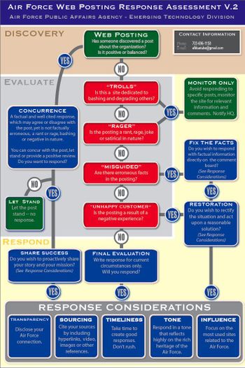 I wrote about the detailed Air Force blog assessment flowchart that Capt. Faggard shared with me. It provides, in simple to understand, but in a detailed and specific way, how to react to blog posts.
