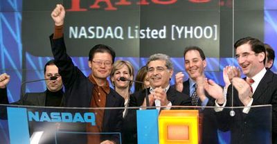 The morning will go roughly like this. We'll meet around 8:30, pass through security, and go to the television studio at NASDAQ. There will be a few really short speeches, then I will ring the bell. We'll have some photos in the studio and then a photo outside with my World Wide Rave book cover on the NASDAQ Tower in Times Square.