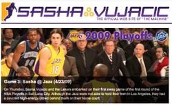 For a look at a terrific professional athlete fan page, check out the site of Sasha Vujacic, the point guard / shooting guard of the Los Angeles Lakers' triangle offense. Sasha was a member of the Slovenian junior national team and was drafted by the Los Angeles Lakers in the 2004 NBA Draft. He's now in the thick of the NBA playoffs.