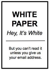 - Most white papers require registration (and therefore are used as lead bait instead of true information delivery). The forced registration sets up an adversarial relationship with the reader. The give (email) to get (white paper) is a transaction.
