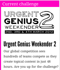 The team that creates the content with the most hits / likes / retweets wins. In addition, UrgentGenius has "a who's who" (their words) of media folk to appraise the work so even if your creation doesn't win, it could be a "judges favourite." (I'm one of the judges.)