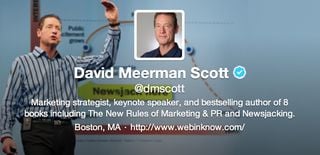 I conferred with my go-to designer Doug Eymer on what I could do with mine and updated my @dmscott Twitter profile page in just a few minutes.