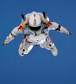 Baumgartner traveled higher in a balloon than anyone – more than 127,800 ft. – and from that height he made the highest skydive, breaking a previous record that had stood for more than 50 years. While in free fall, he traveled Mach 1.24 — 833.9 miles per hour - making him the first human to travel faster than the speed of sound without being inside a craft.