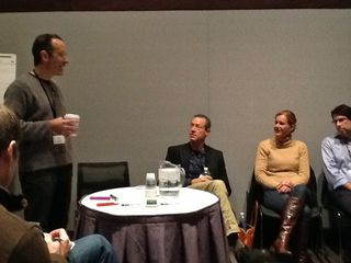 Since I was participating on the panel and chose not to multi-task, I gathered additional information needed for this report from a few sources including great posts about the panel by Fred Destin (who in true real-time fashion had his post up before the panel was over) Engaging with the Press and Kevin Kosh's Get Rich Fast? Get Over Yourself!, Scott's @ScottKirsner Twitter feed, and the 35 tips the panel created which were transferred to flipcharts (I snapped photos of each of the 5 pages).