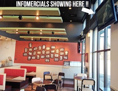 Why would an executive at Qdoba (or the franchisee) choose to play nonstop infomercials in the restaurant?
