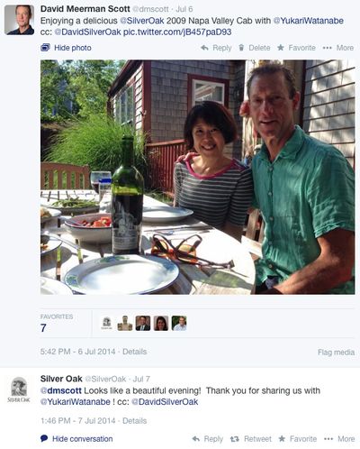 I saw this in action a few weeks ago, as I enjoyed a delicious bottle of 2009 Silver Oak with my wife @YukariWatanabe. When I tweeted the photo evidence, @SilverOak responded, unlike many brands that I try to engage with on social networks who don’t respond to me at all like, say, Ritz-Carlton Hotel Company.