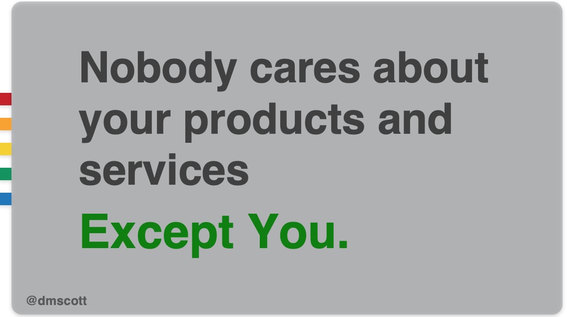 The biggest mistake I see with sales and marketing (and I see it all the time) is when companies focus too much on their own products and services.