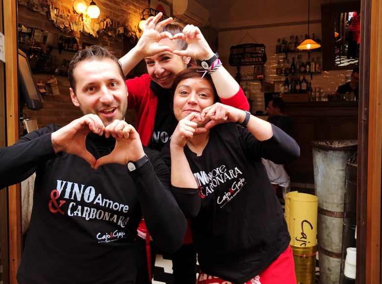 While in Rome last week to deliver a full-day real-time marketing masterclass for my friends at Hi-Performance, I had a free day to explore the city. When lunchtime came I checked out about a dozen places to eat the old school, analog way - wandering around, looking in windows, and checking menus. I chose Cajo e Gajo at Piazza di San Calisto in the funky Trastevere neighborhood because it felt warm and welcoming. I’m glad I did because the fun loving staff made the experience memorable.