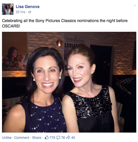 The amazing backstory behind the award is that all the big publishing houses had rejected Lisa Genova, the author of the novel Still Alice from which the movie was based.