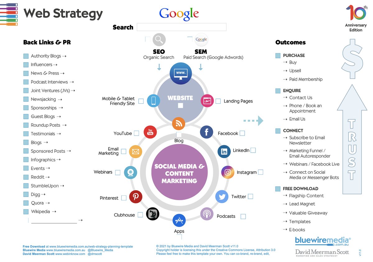 More than a decade ago, I created the first version of the Web Marketing Strategy Planning Template with my friends Toby Jenkins and Adam Franklin of Australian web strategy firm Bluewire Media.