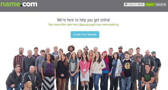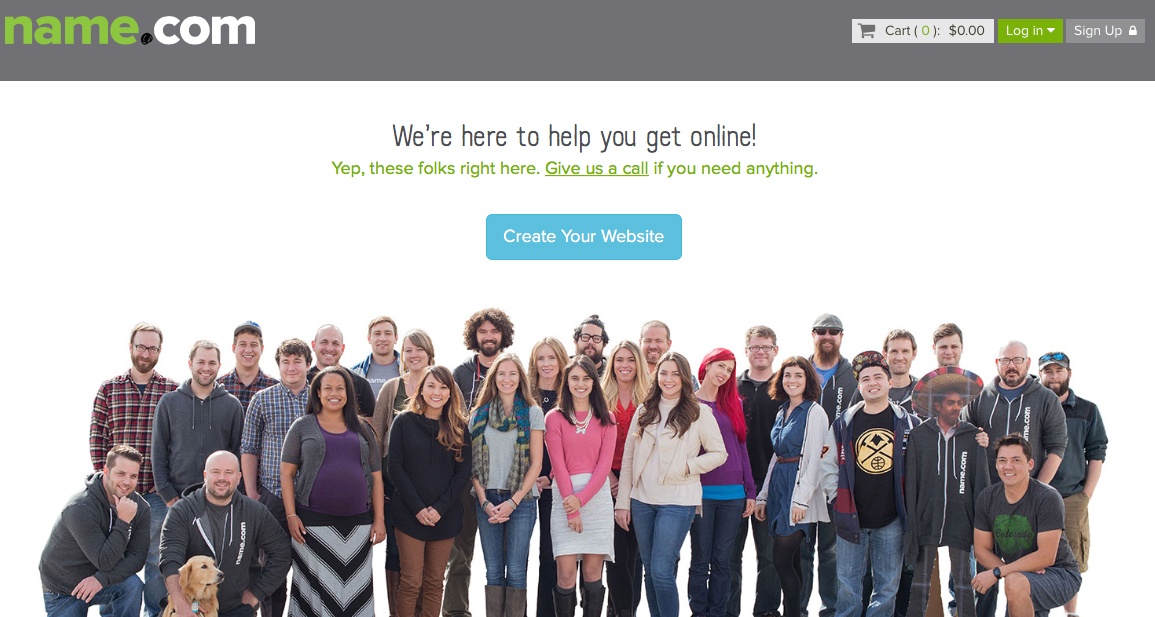 The homepage includes a photograph of the entire team with this text: We’re here to help you get online!