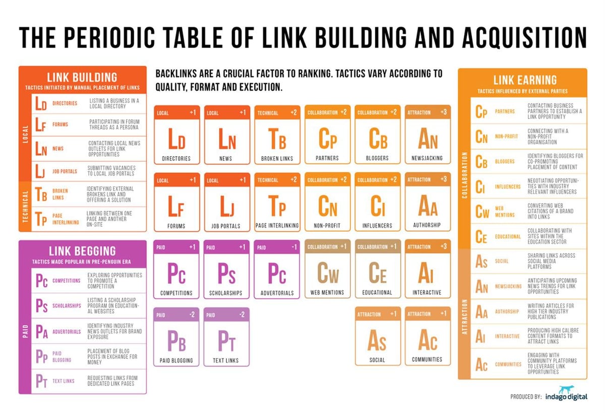 Indago Digital, an Australia digital marketing agency, recently reviewed the various ways to build inbound links and put them into a clever Periodic Table of Link Building. The company says: “Our goal with the Periodic Table of Link Building is to help publishers focus on the fundamentals needed to achieve success by engaging with contextually relevant websites.” I’m pleased to see that Newsjacking, a concept I pioneered, is one of most important elements in the table.