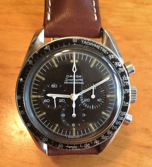 In my collection of artifacts from the Apollo lunar program, I own a 1960s Omega Speedmaster Professional ST 105.012. This is the exact model watch with a 321 Calibre movement worn by both Neil Armstrong and Buzz Aldrin during the Apollo 11, the first lunar landing mission, in July 1969. Aside from its primary and obvious function of being able to keep time in zero gravity (and on the moon's gravity of roughly 1.6 of the earth's), the Omega Speedmaster Professional also incorporated a chronograph (stopwatch) via the large third hand on the watch dial. Watches like this one are over 50 years old and quite rare so they tend to sell at specialized watch dealers and on sites like Chrono 24.