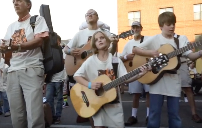 I just love how Spicer’s Music of Auburn Alabama brought their community together for Make Music Day in an attempt to create the world’s largest rock band. Over 850 people brought guitars, drums, basses, keyboards, ukuleles, harps, harmonicas, violins, trumpets, washboards and so much more to play Lynyrd Skynyrd's Sweet Home Alabama.